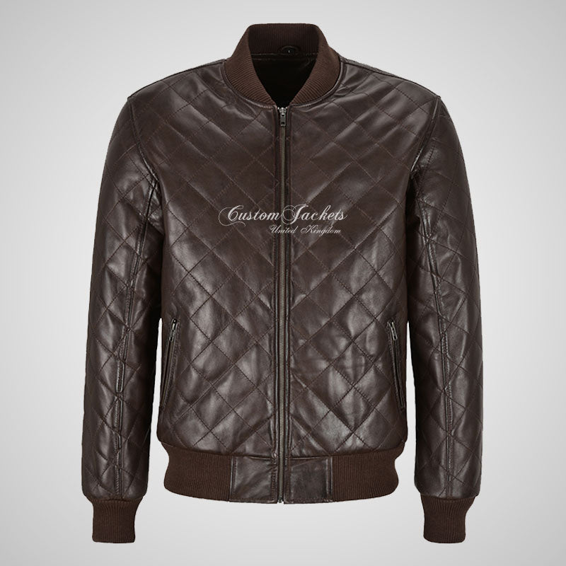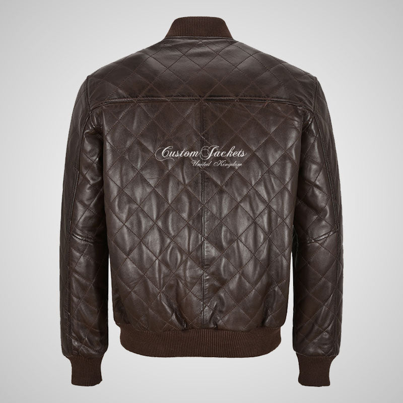 WINGED Mens Leather Quilted Bomber Jacket