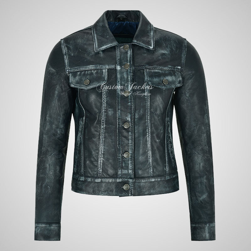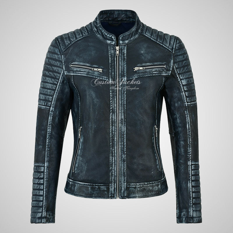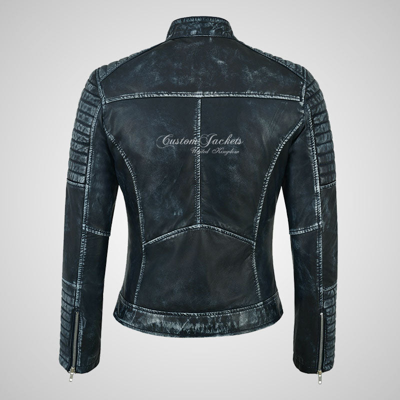 SERA Women Leather Biker Jacket Soft Waxed Real Leather - color variant: Navy