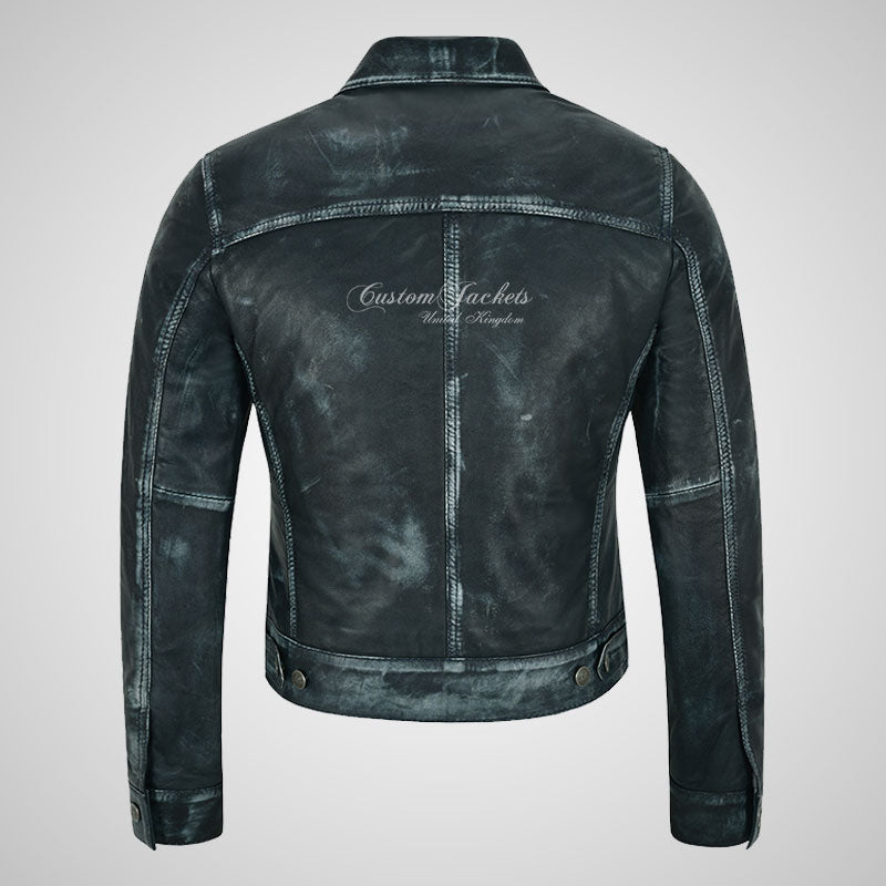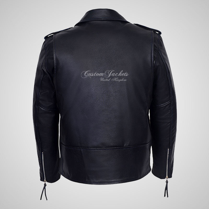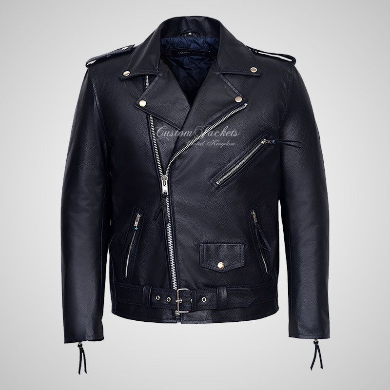 MARLON BRANDO Mens Biker Leather Jacket Moto Leather Jacket - color variant: Navy