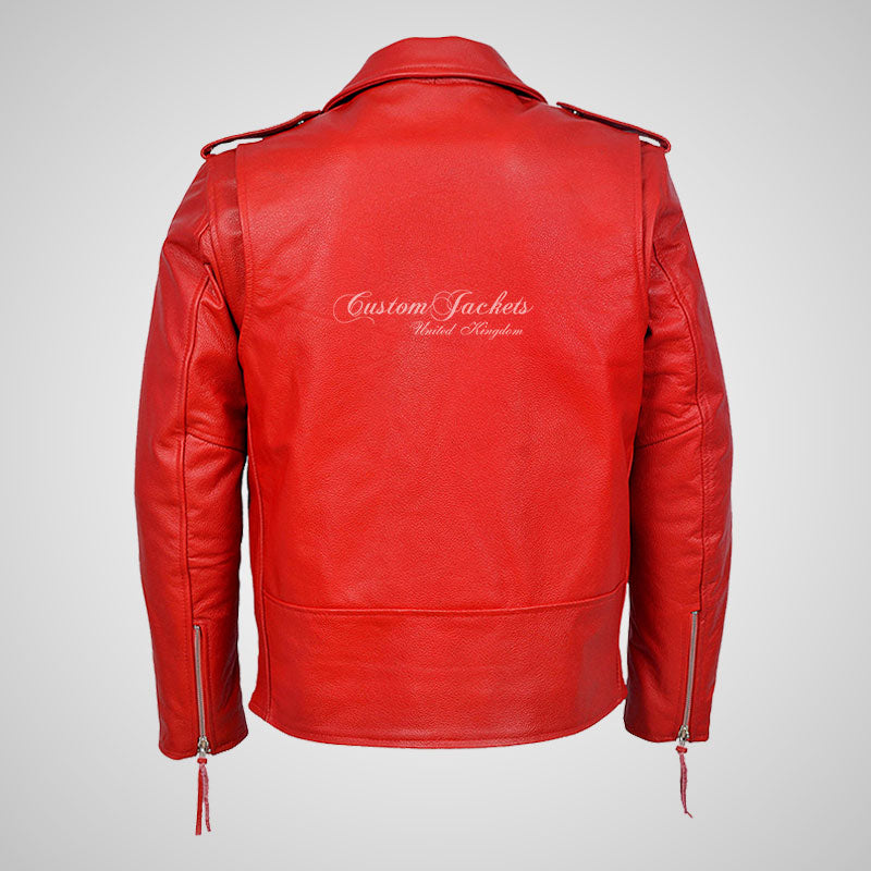 MARLON BRANDO Mens Biker Leather Jacket Moto Leather Jacket - color variant: Red