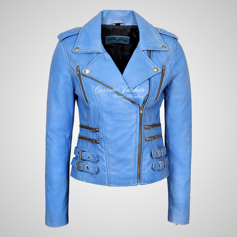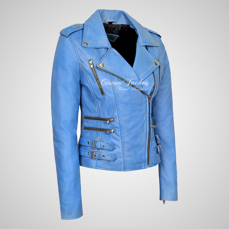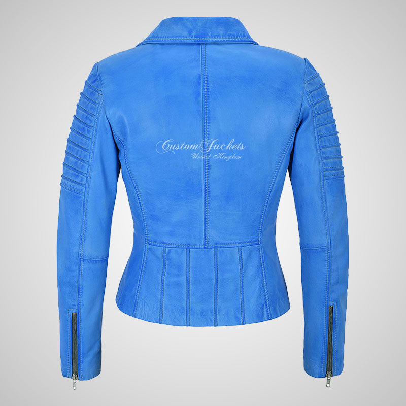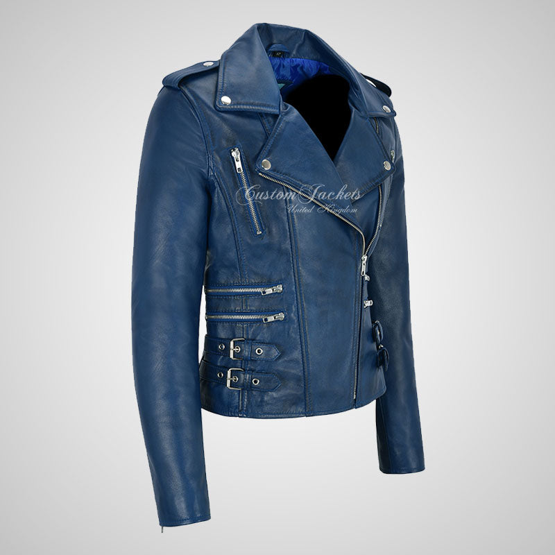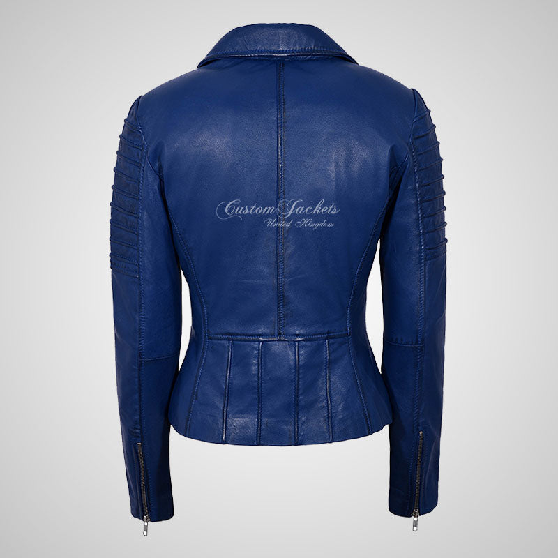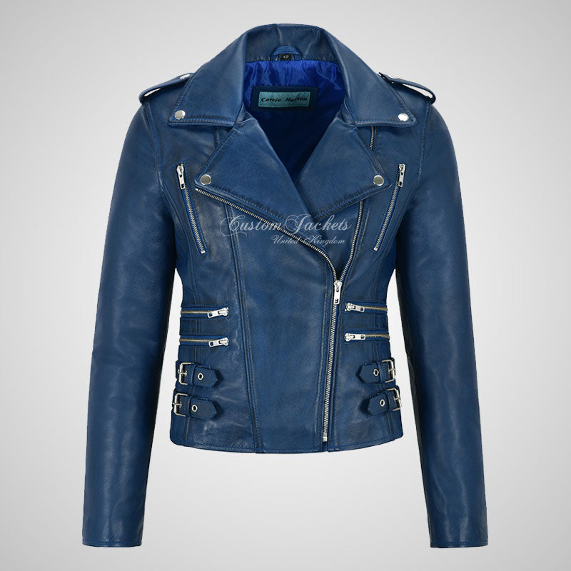 ROSETTA Ladies Biker Leather Jacket Soft Lambskin Napa Leather - color variant: Blue