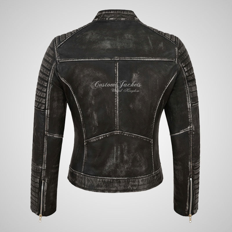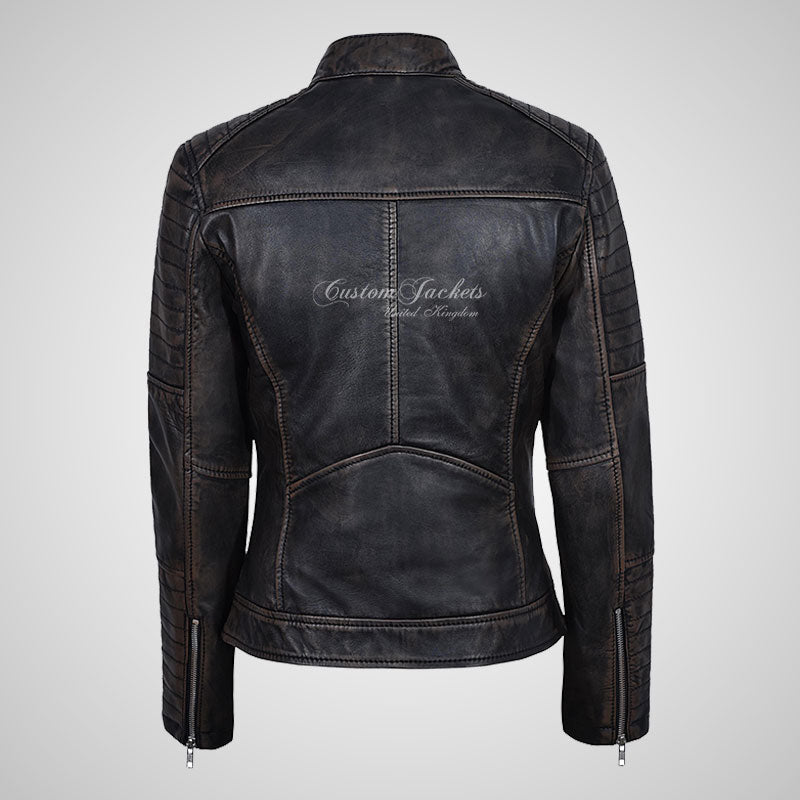 SERA Women Leather Biker Jacket Soft Waxed Real Leather
