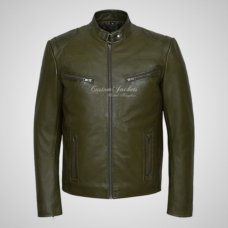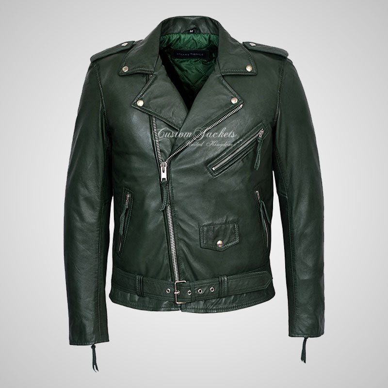 MARLON BRANDO Style Mens Biker Leather Jacket Casual Fashion Jacket - color variant: Dark Green
