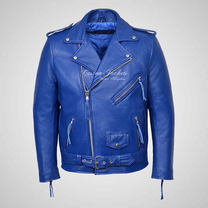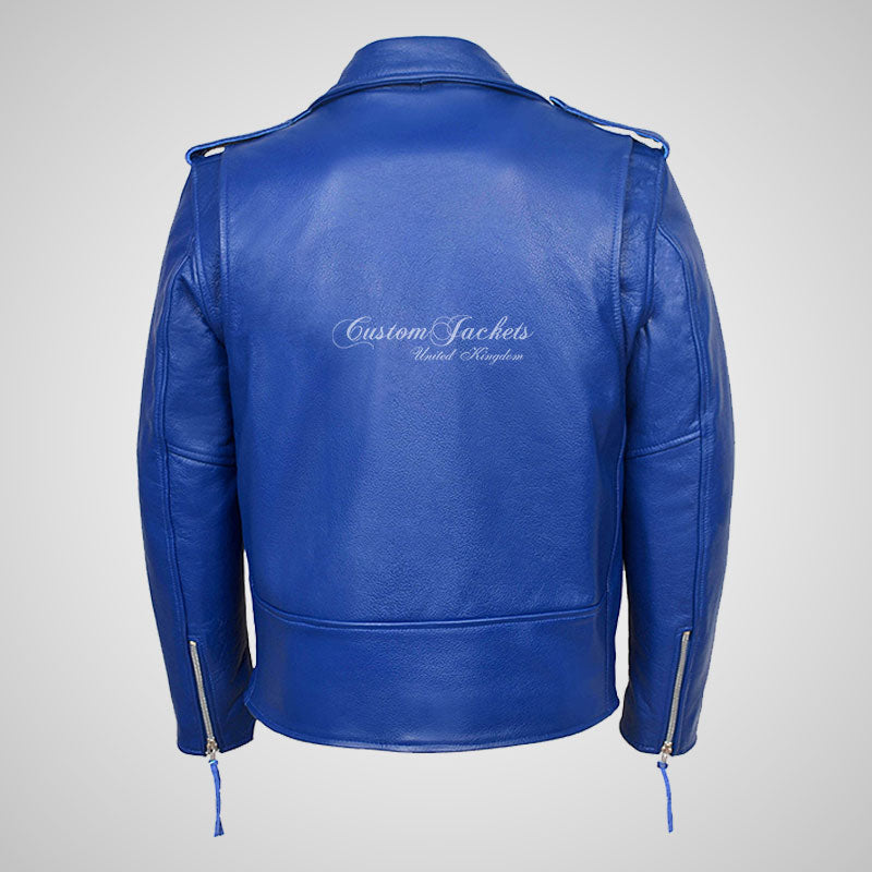 MARLON BRANDO Mens Biker Leather Jacket Moto Leather Jacket - color variant: Blue