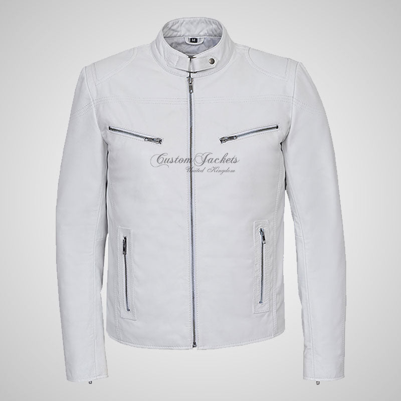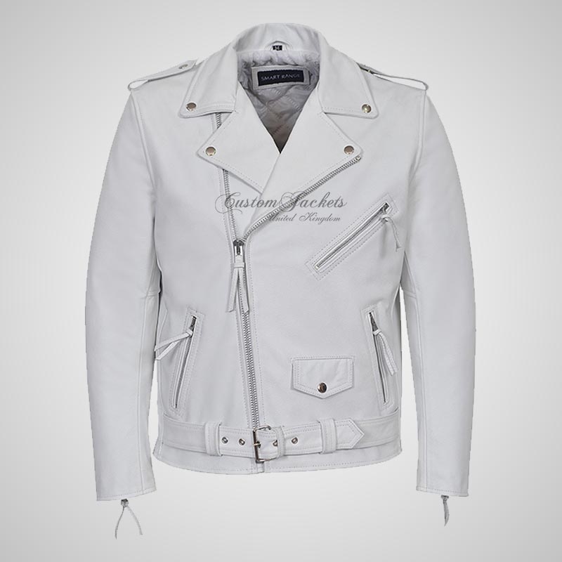 MARLON BRANDO Mens Biker Leather Jacket Moto Leather Jacket - color variant: White