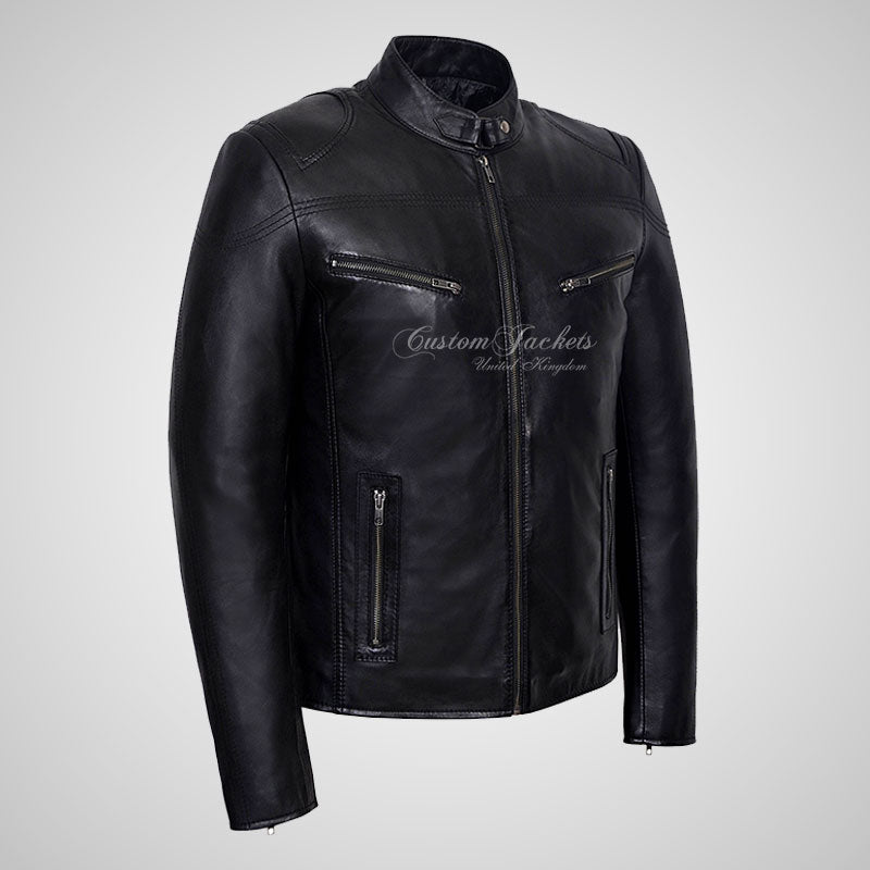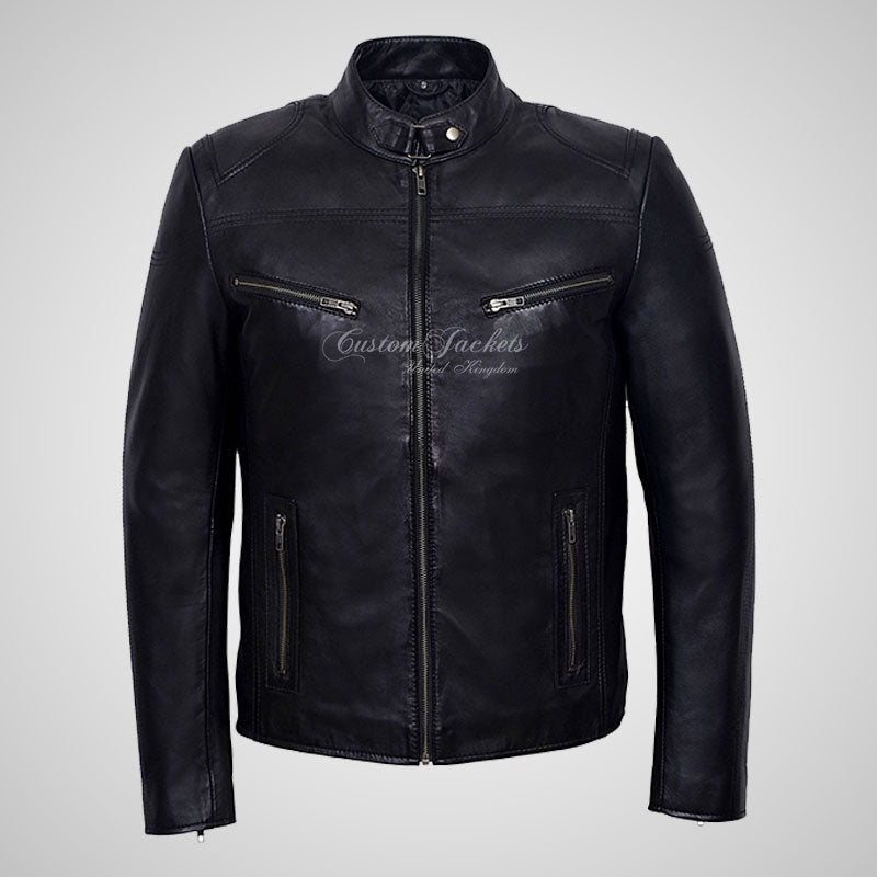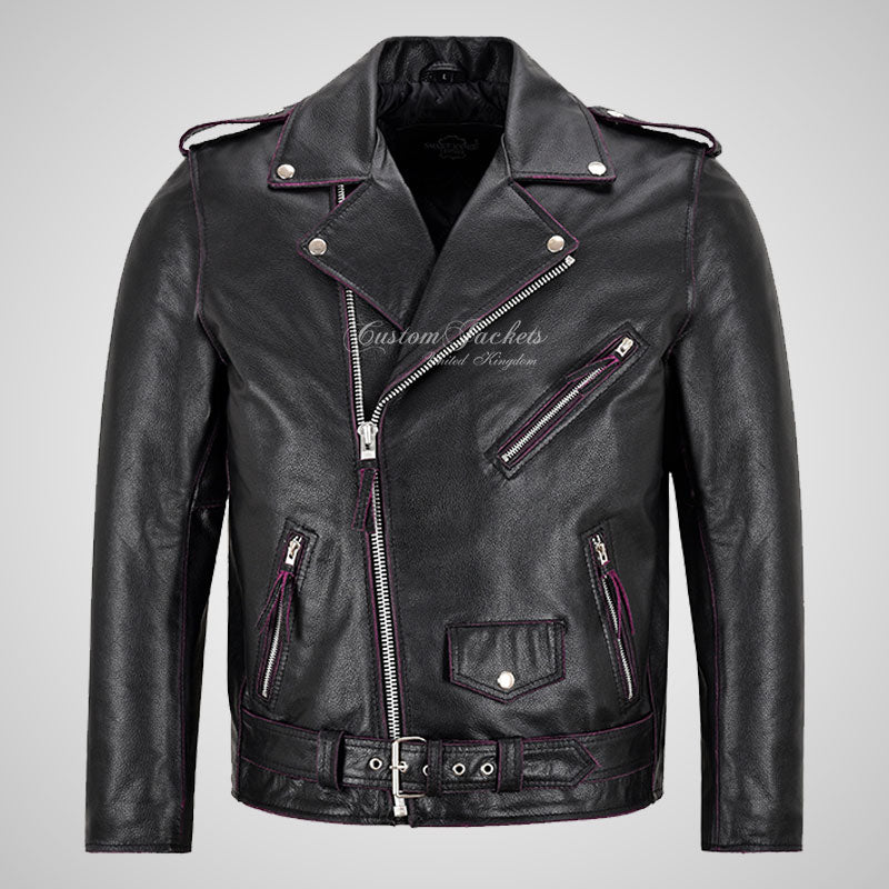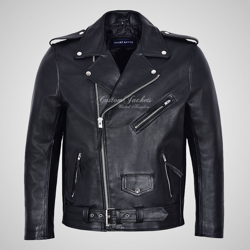 MARLON BRANDO Mens Biker Leather Jacket Moto Leather Jacket - color variant: Black