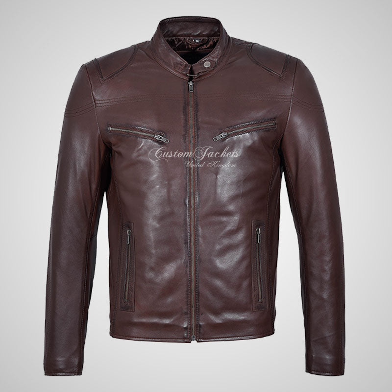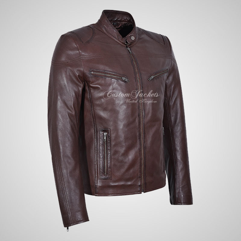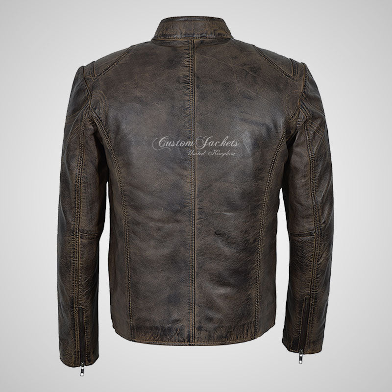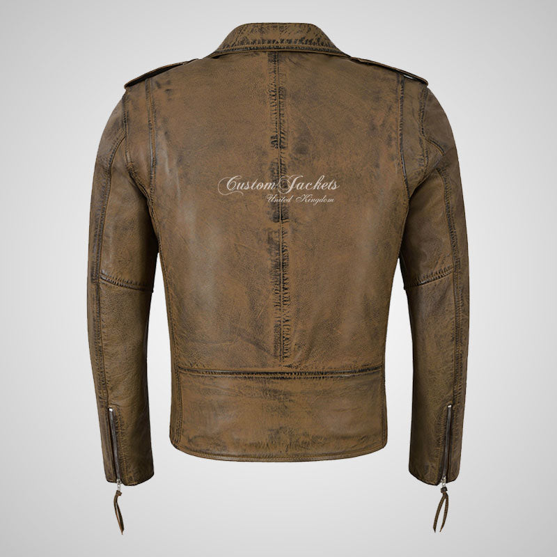 MARLON BRANDO Style Mens Biker Leather Jacket Casual Fashion Jacket - color variant: Mud