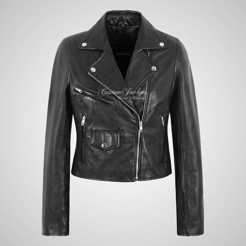 SASSY Ladies Biker Leather Jacket Soft Lambskin Napa Leather