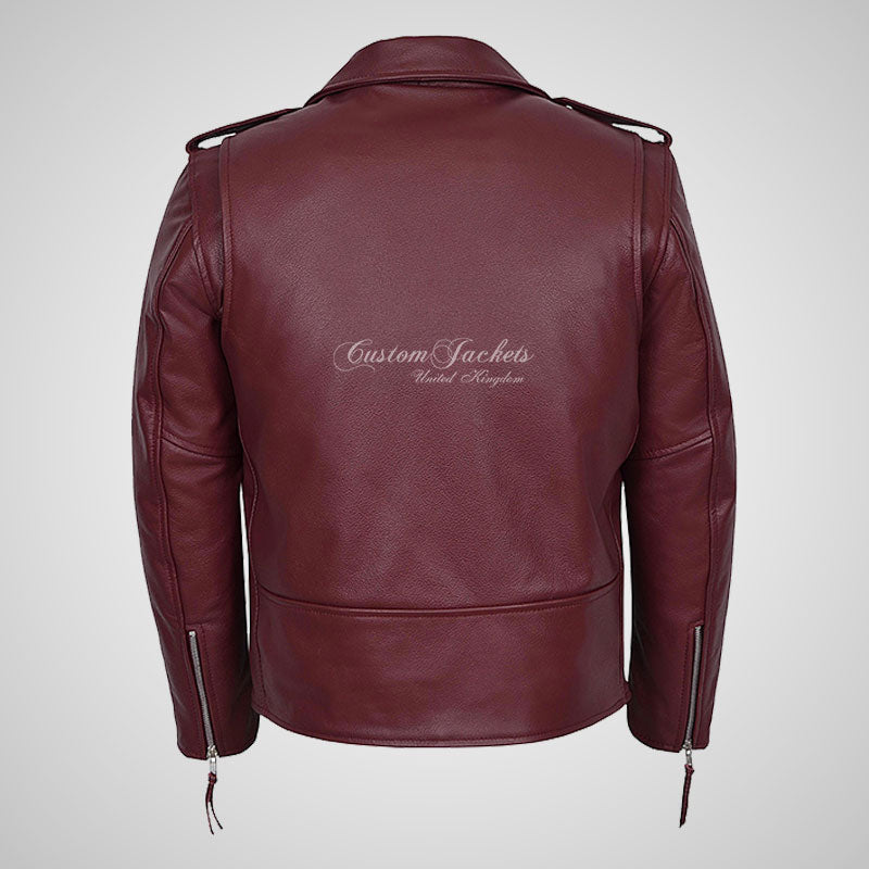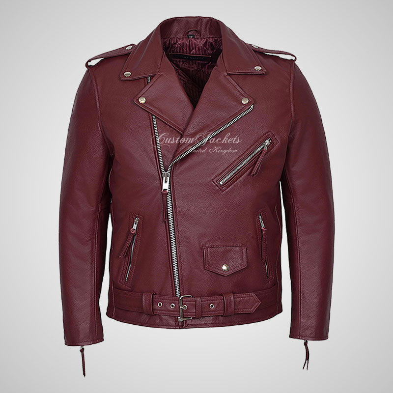 MARLON BRANDO Mens Biker Leather Jacket Moto Leather Jacket - color variant: Maroon