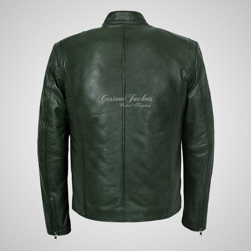 RAGE Mens Leather Fashion Biker Jacket Soft Leather - color variant: Dark Green