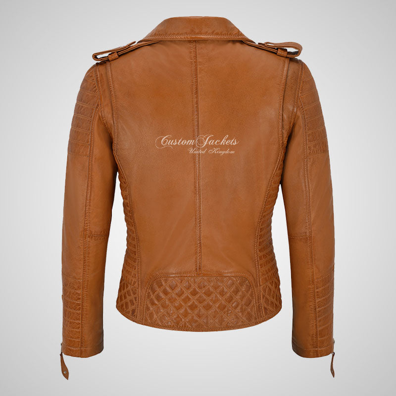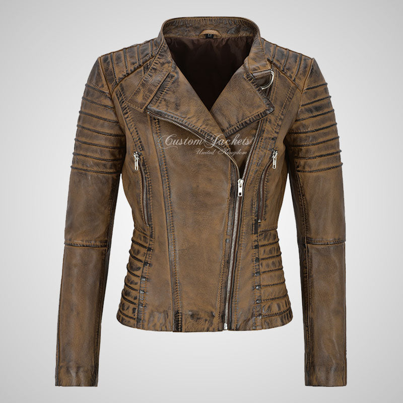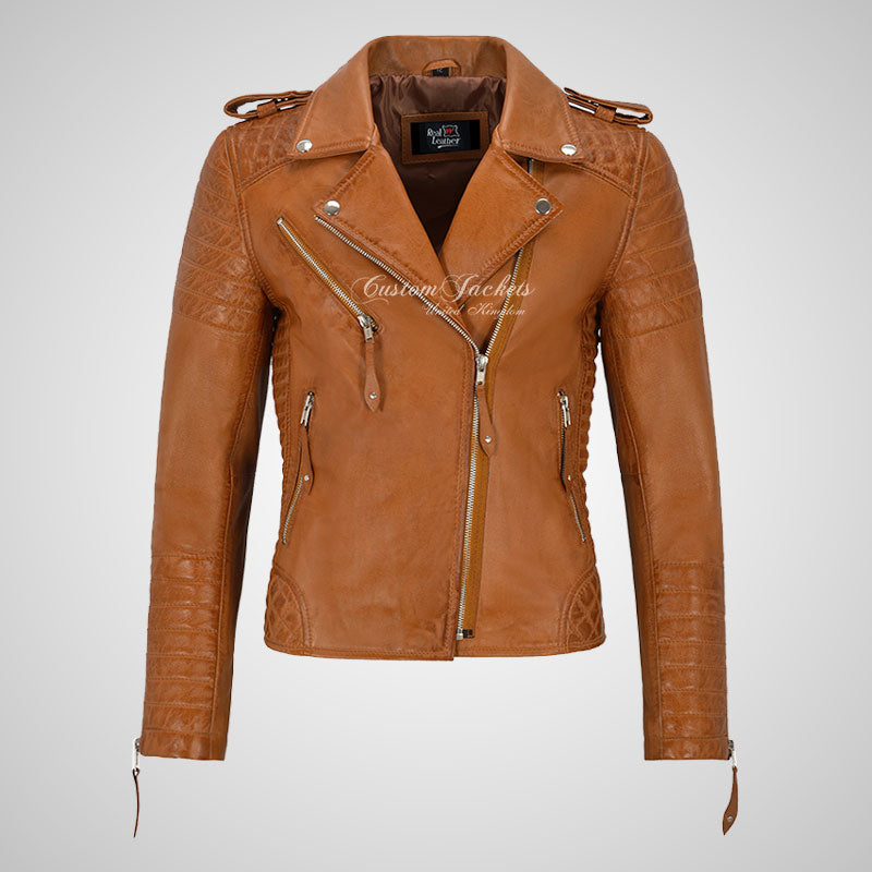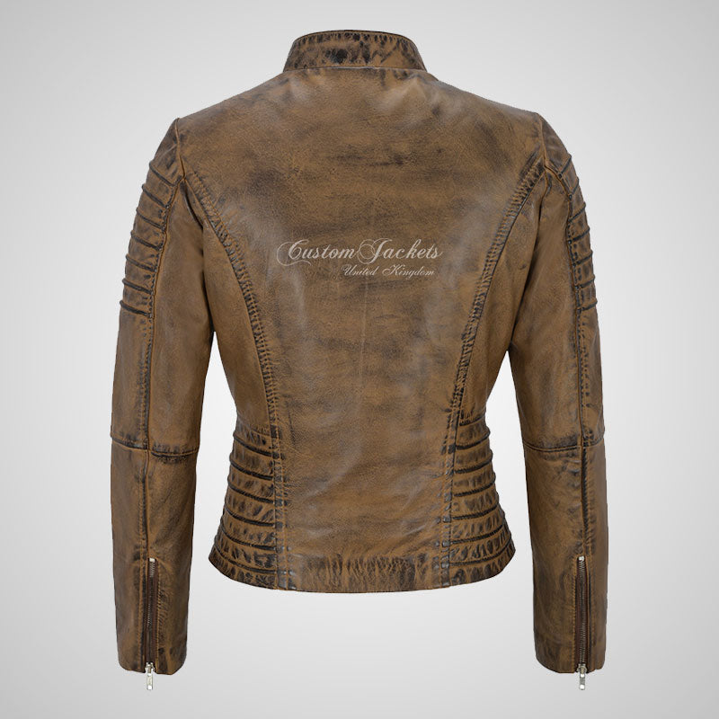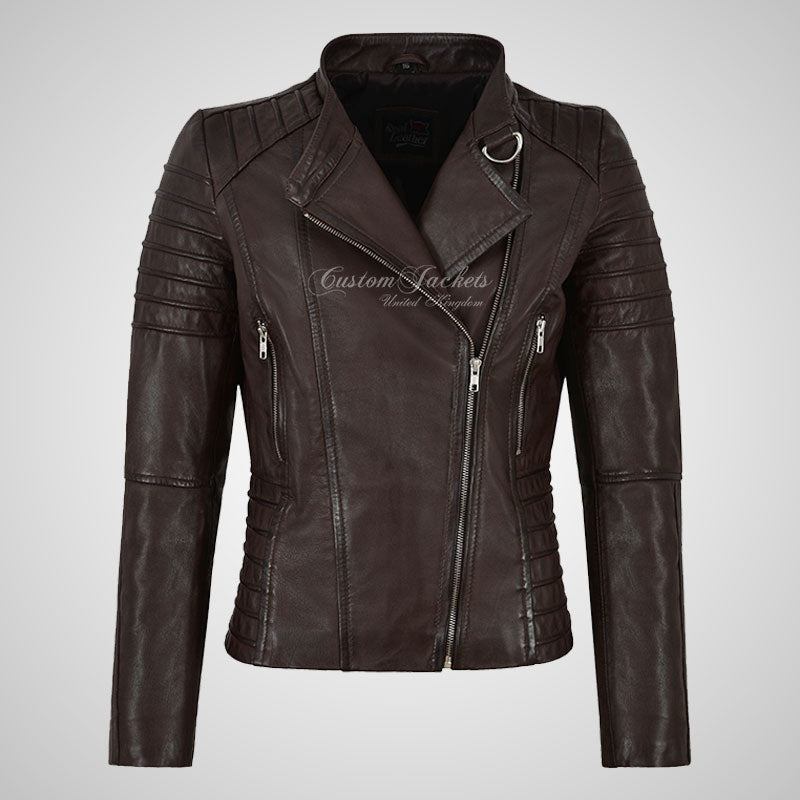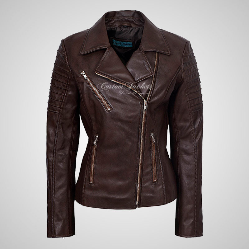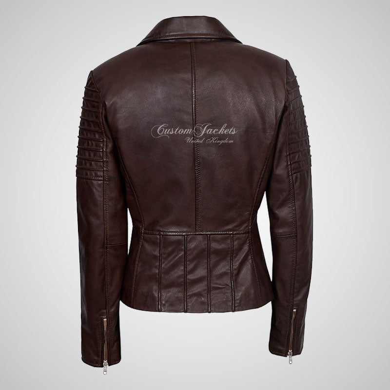 MARIYA Women Leather Biker Jacket Soft Lambskin Leather - color variant: Brown