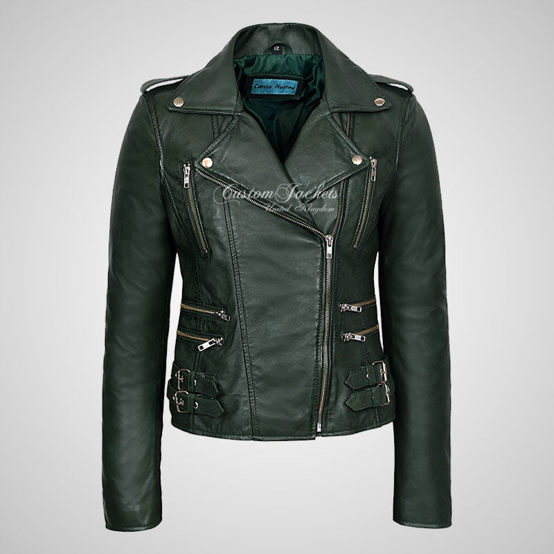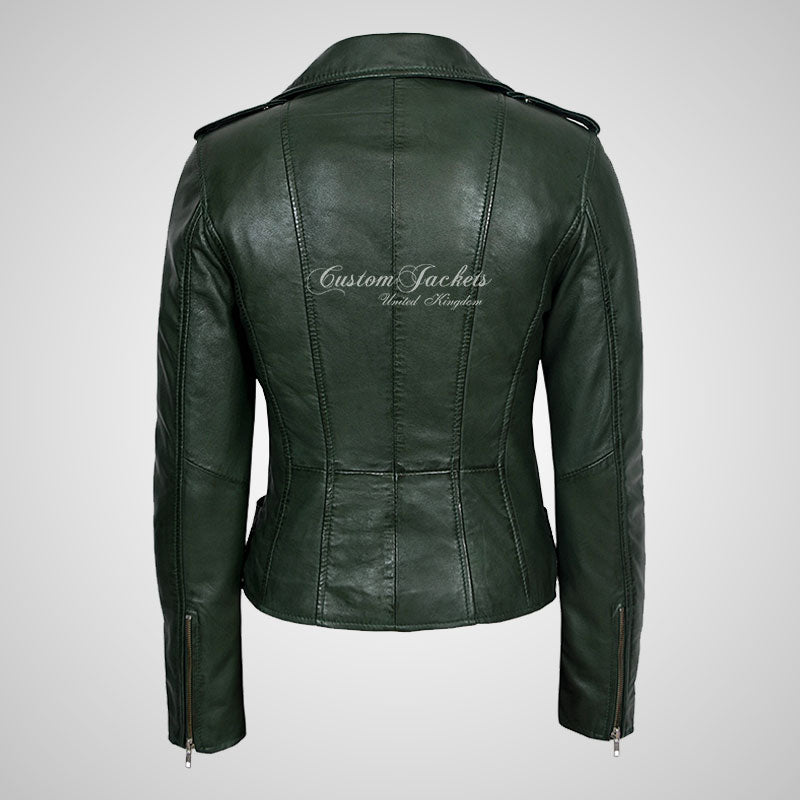 CATWALK Ladies Leather Biker Jacket Soft Lambskin Leather - color variant: Dark Green