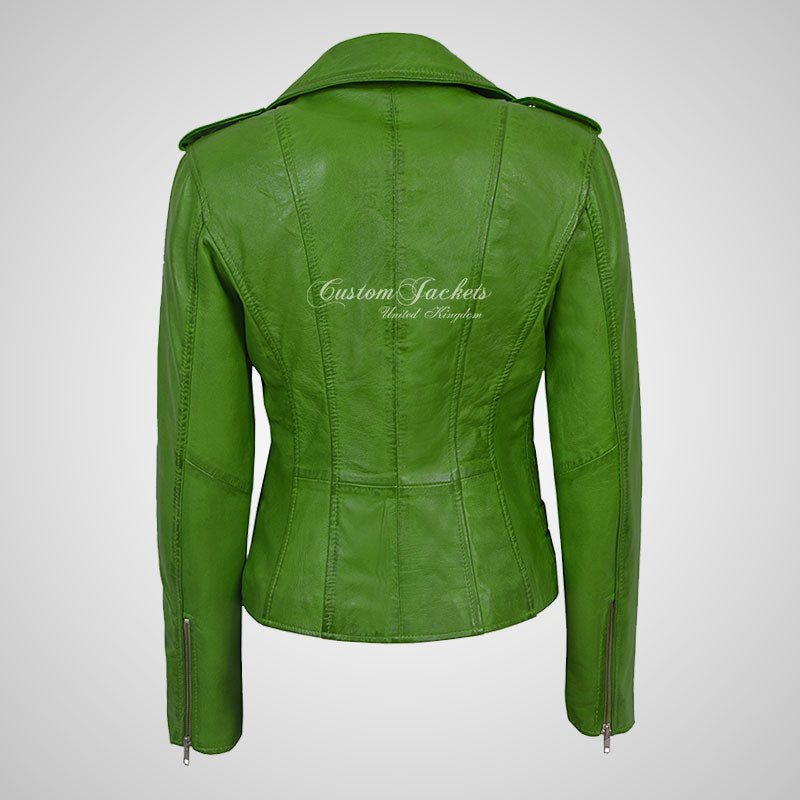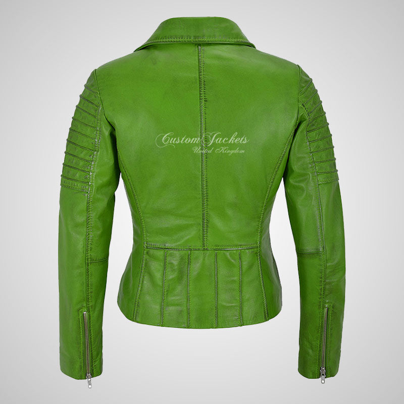 ROSETTA Ladies Biker Leather Jacket Soft Lambskin Napa Leather - color variant: Lime Green