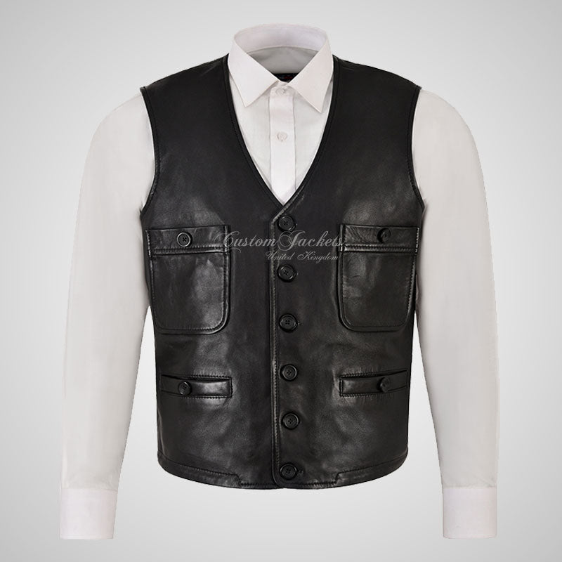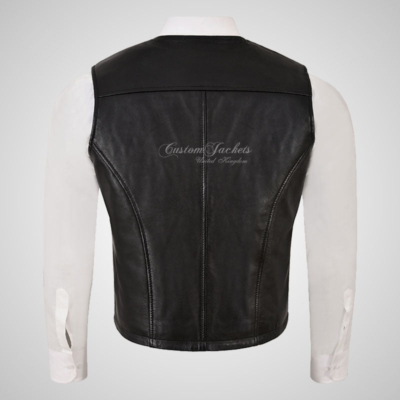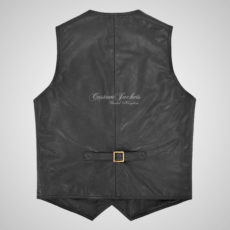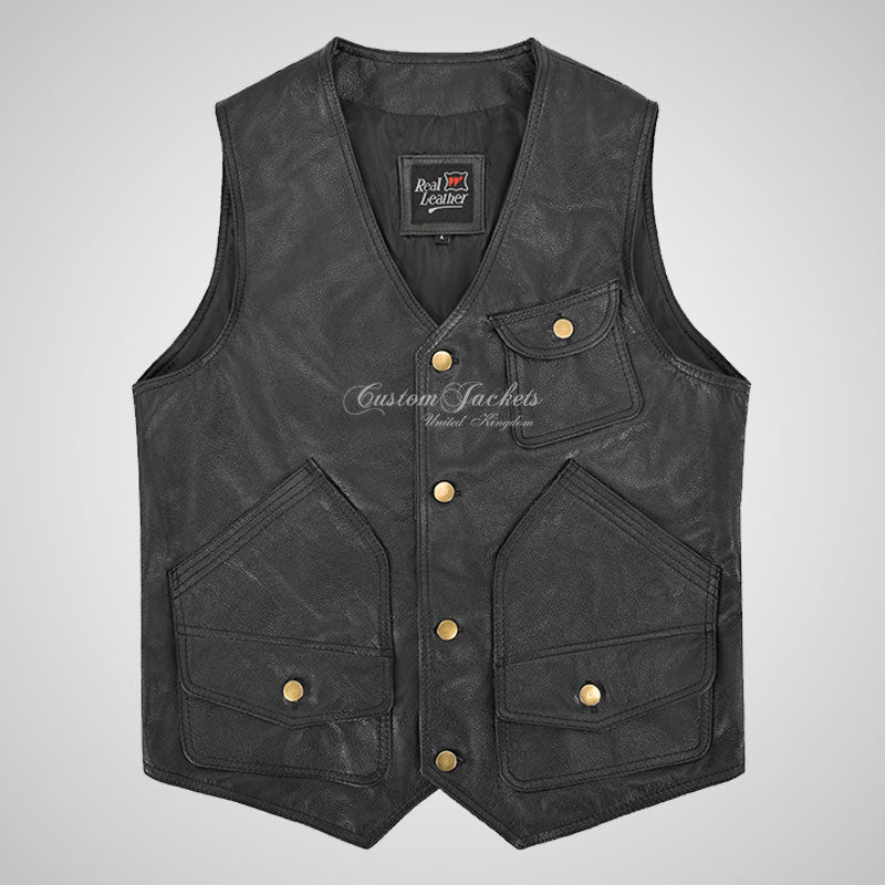YORK Men's Dirty Vintage Leather Waistcoat Soft Waxed Leather Vest - color variant: Black