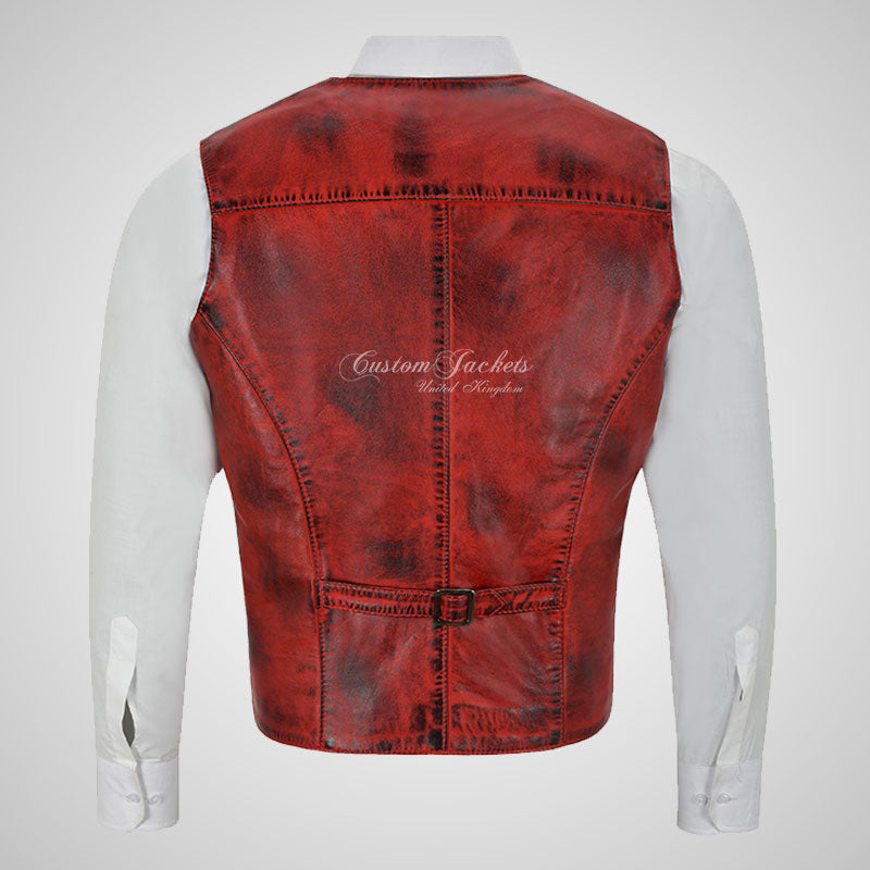 YORK Men's Dirty Vintage Leather Waistcoat Soft Waxed Leather Vest - color variant: Red