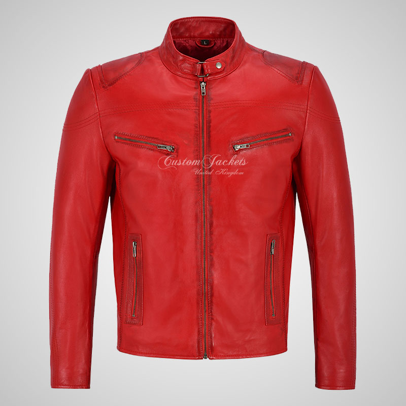 RAGE Mens Leather Fashion Biker Jacket Soft Leather - color variant: Red