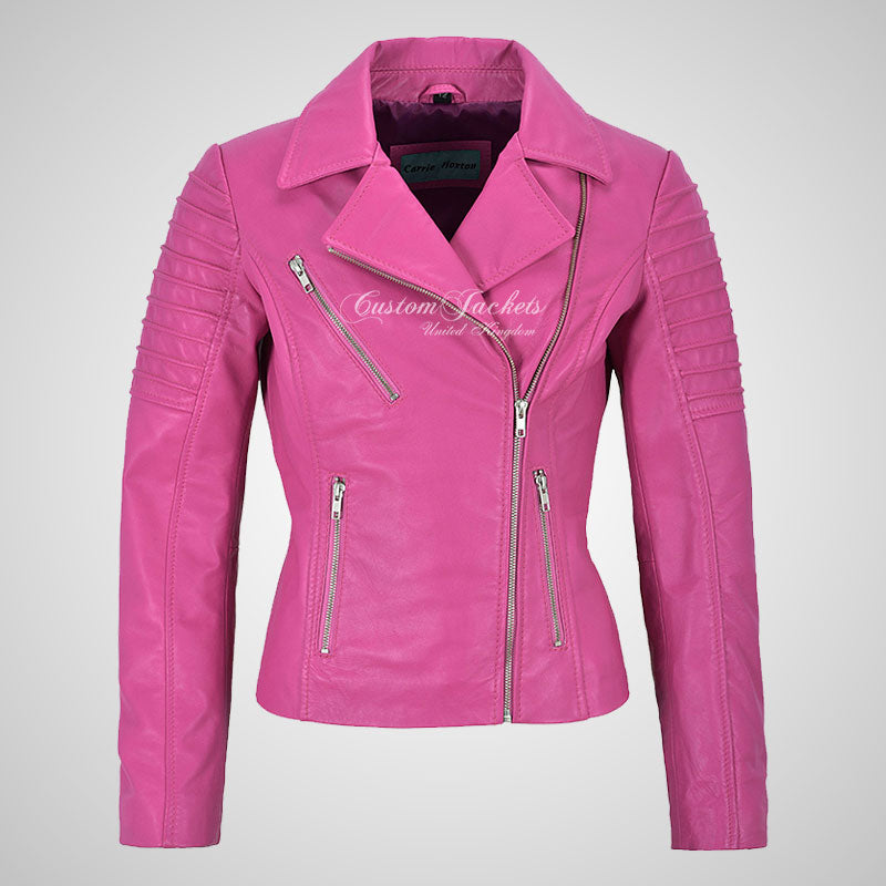 ROSETTA Ladies Biker Leather Jacket Soft Lambskin Napa Leather - color variant: Hot Pink