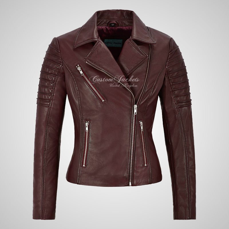 ROSETTA Ladies Biker Leather Jacket Soft Lambskin Napa Leather - color variant: Maroon