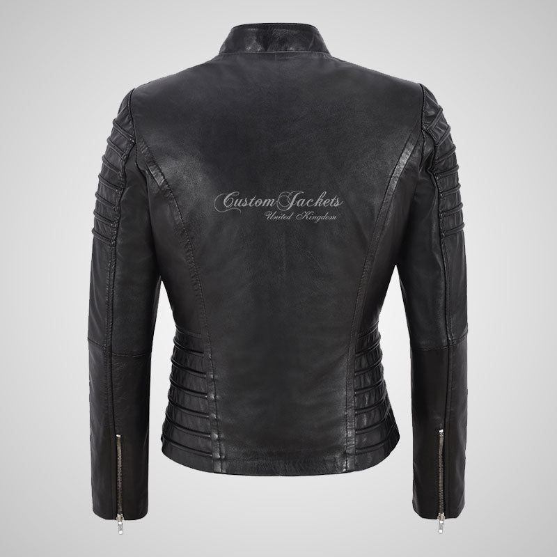 MARIYA Women Leather Biker Jacket Soft Lambskin Leather - color variant: Black