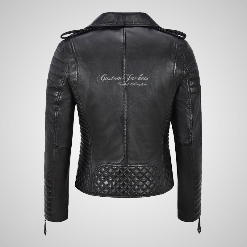 ROSETTA Ladies Biker Leather Jacket Soft Lambskin Napa Leather