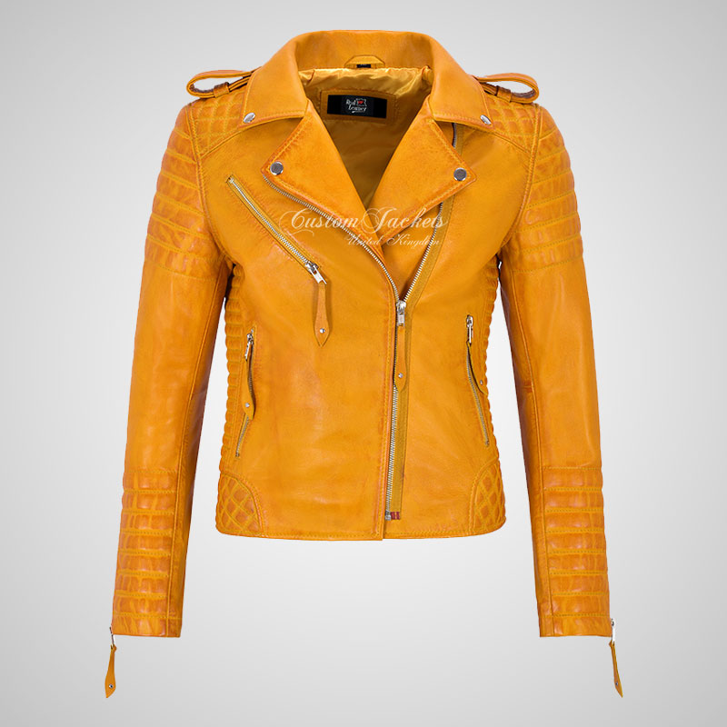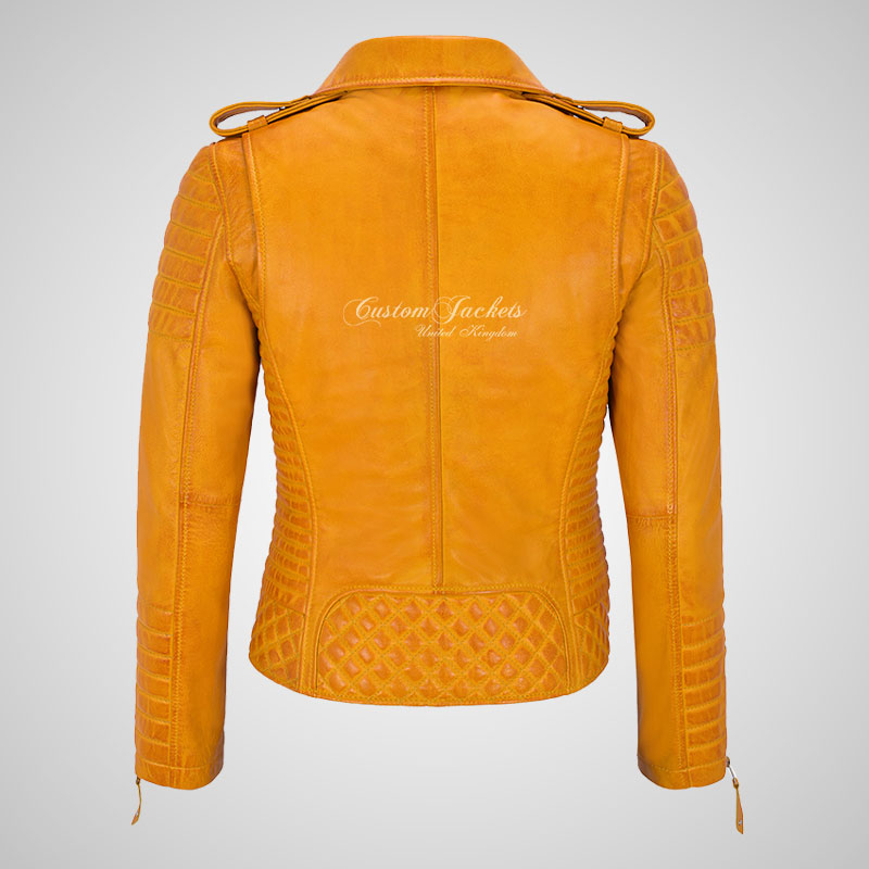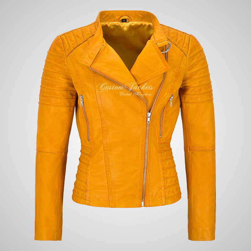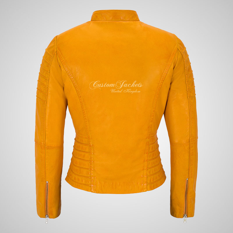 MARIYA Women Leather Biker Jacket Soft Lambskin Leather - color variant: Yellow