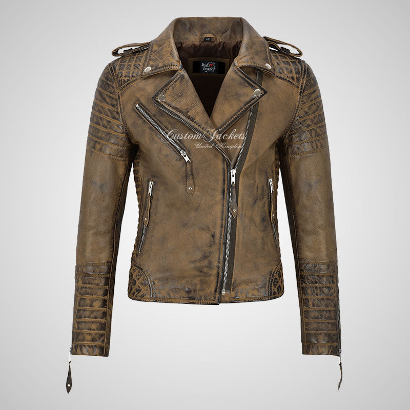 MARIYA Women Leather Biker Jacket Soft Lambskin Leather - color variant: Mud