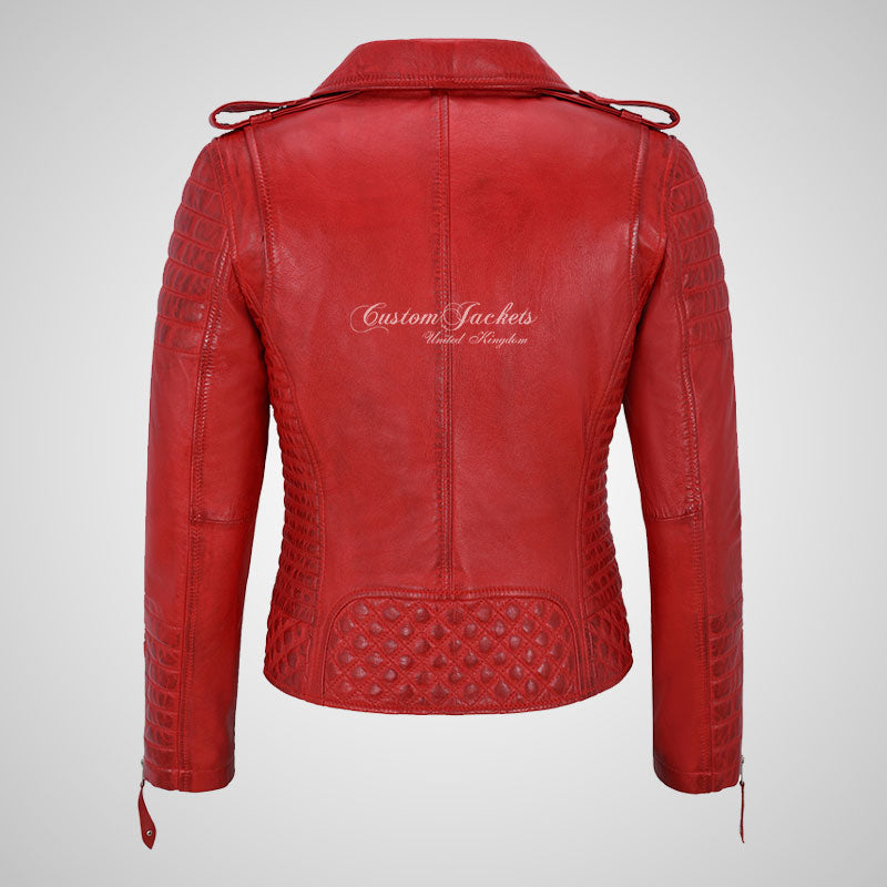 ROSETTA Ladies Biker Leather Jacket Soft Lambskin Napa Leather - color variant: Red