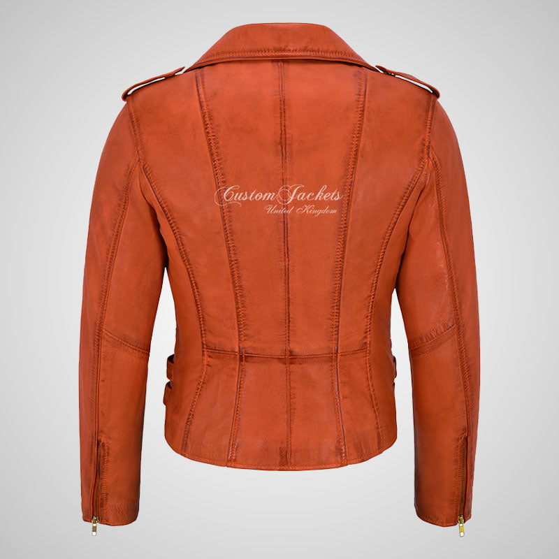 CATWALK Ladies Leather Biker Jacket Soft Lambskin Leather - color variant: Orange Red