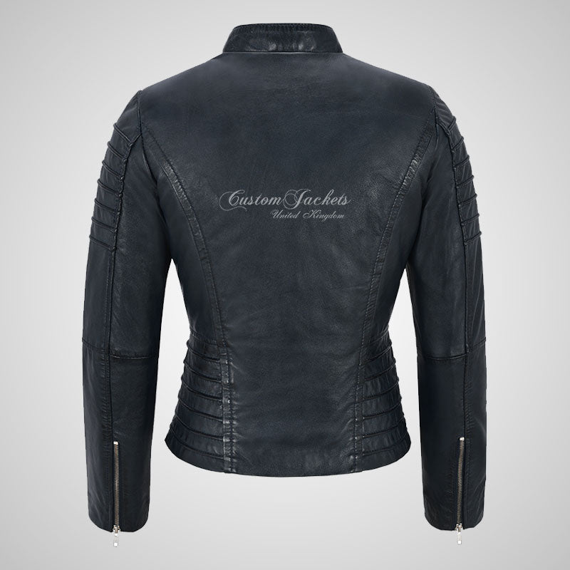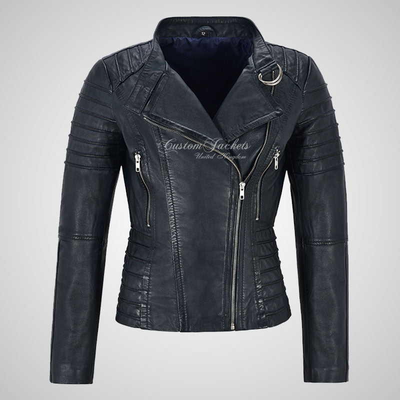 MARIYA Women Leather Biker Jacket Soft Lambskin Leather - color variant: Navy