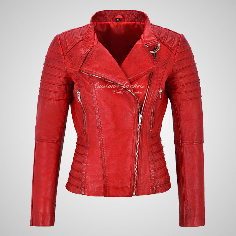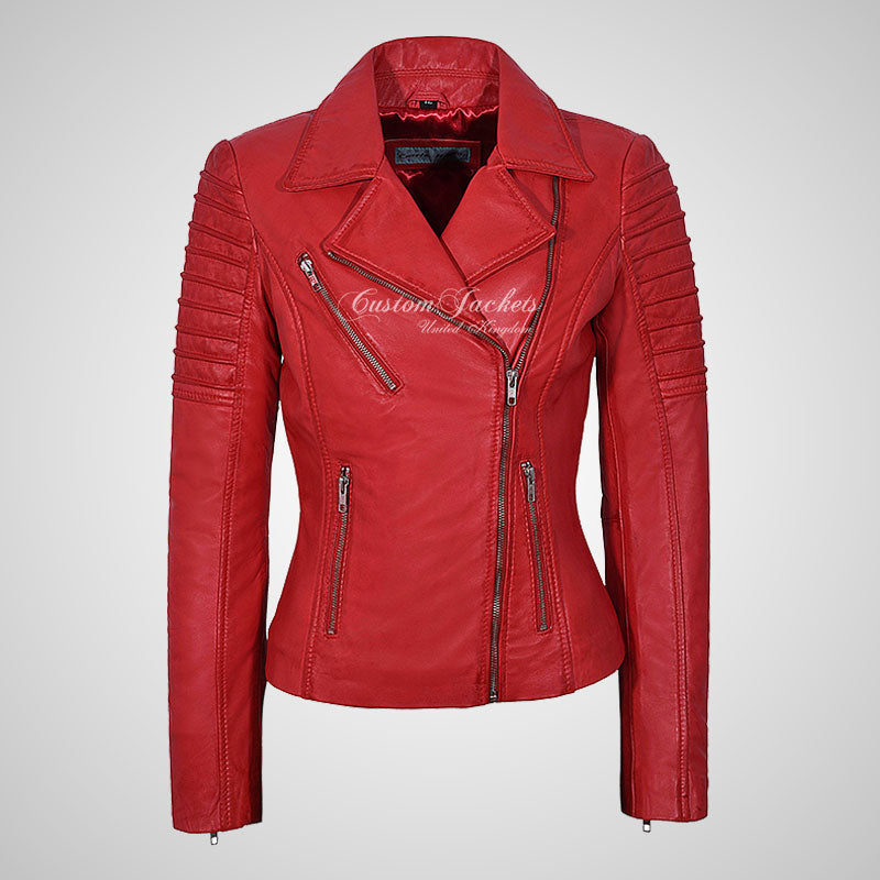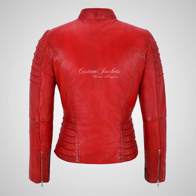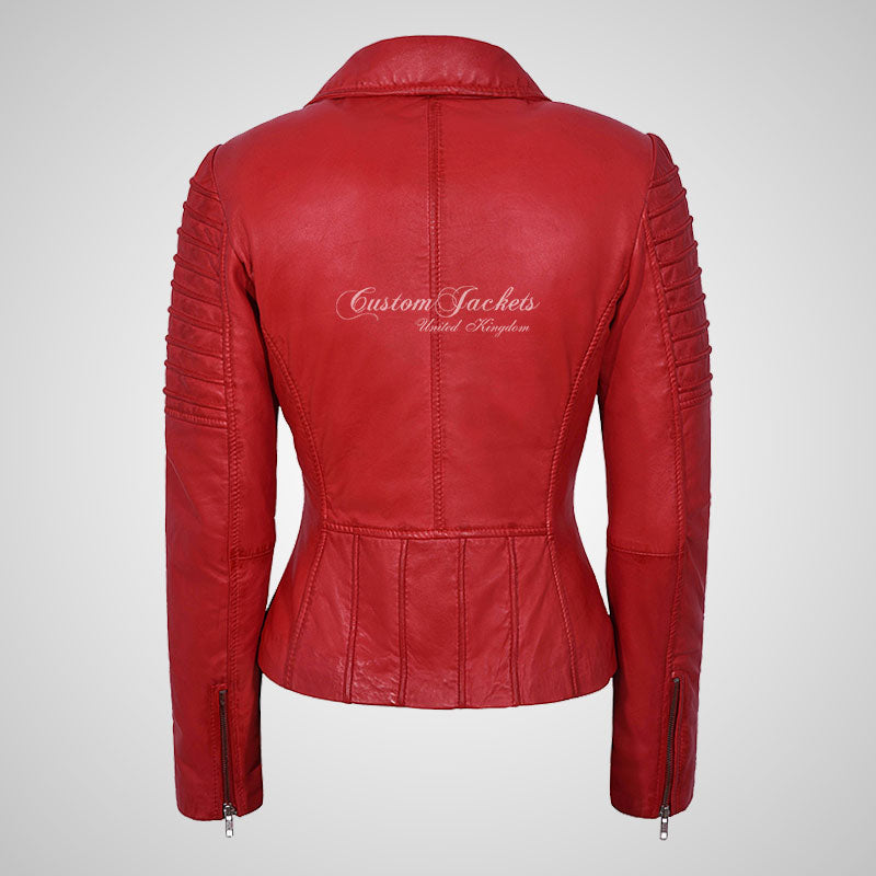 MARIYA Women Leather Biker Jacket Soft Lambskin Leather - color variant: Red
