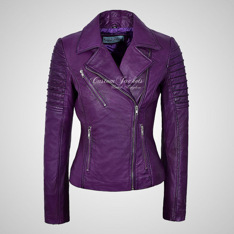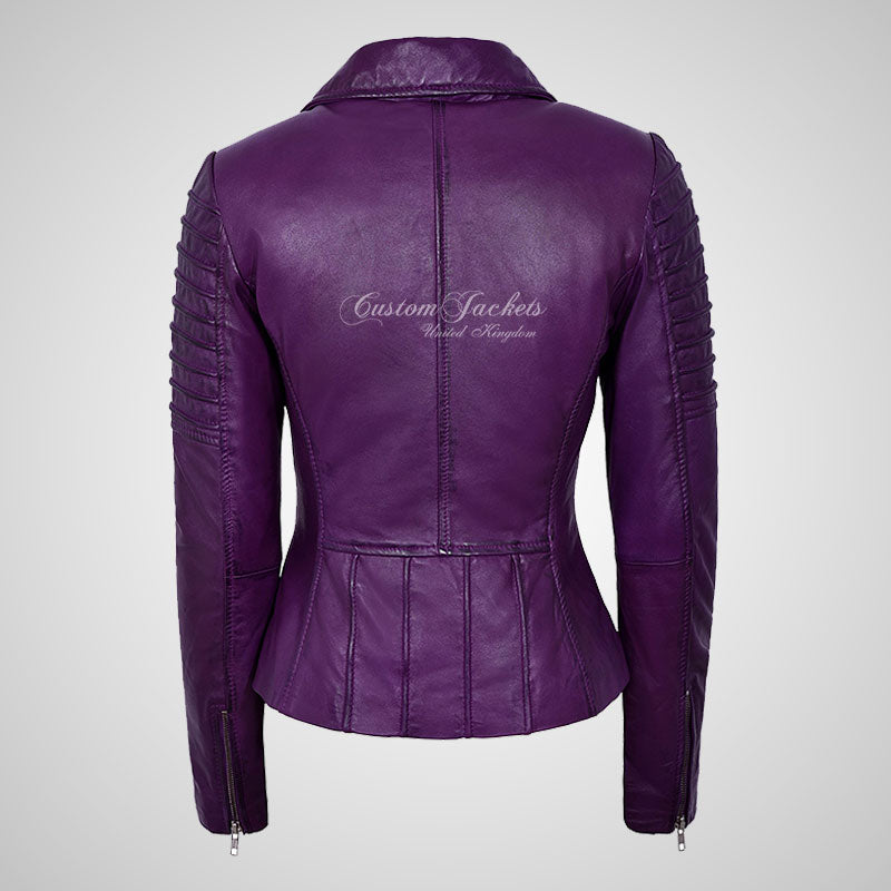 ROSETTA Ladies Biker Leather Jacket Soft Lambskin Napa Leather - color variant: Purple