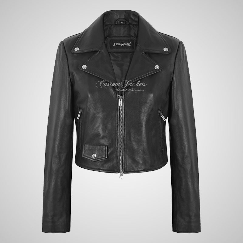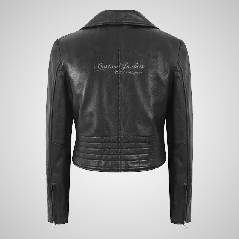 IOANA Ladies Black Leather Biker Jacket Short Fitted