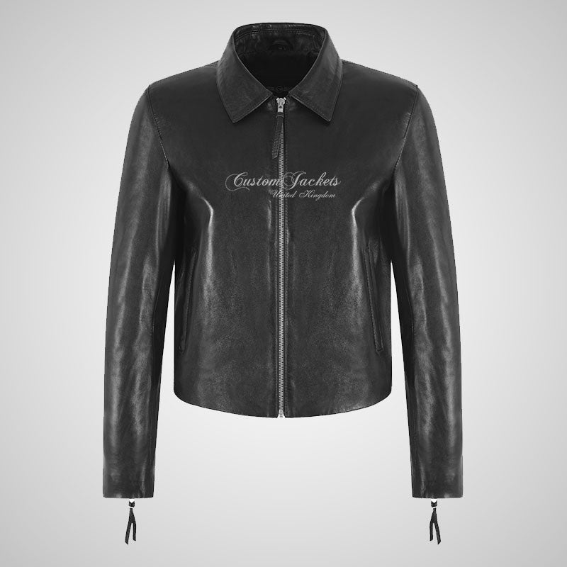 Introducing our Ladies Casual Leather Blouson Style Jacket, a stunning blend of fashion and comfort. Crafted with care, this jacket features a stylish shirt collar and a short straight fit that effortlessly enhances your silhouette. Made from premium real lamb napa leather, it offers a luxurious feel and unmatched durability. The zip fastening adds a touch of convenience and versatility to this wardrobe essential. Whether you're heading to a party or enjoying a casual outing, this jacket is the perfect choice. Elevate your style game with this statement piece that combines chic design and practicality for a truly remarkable fashion experience.