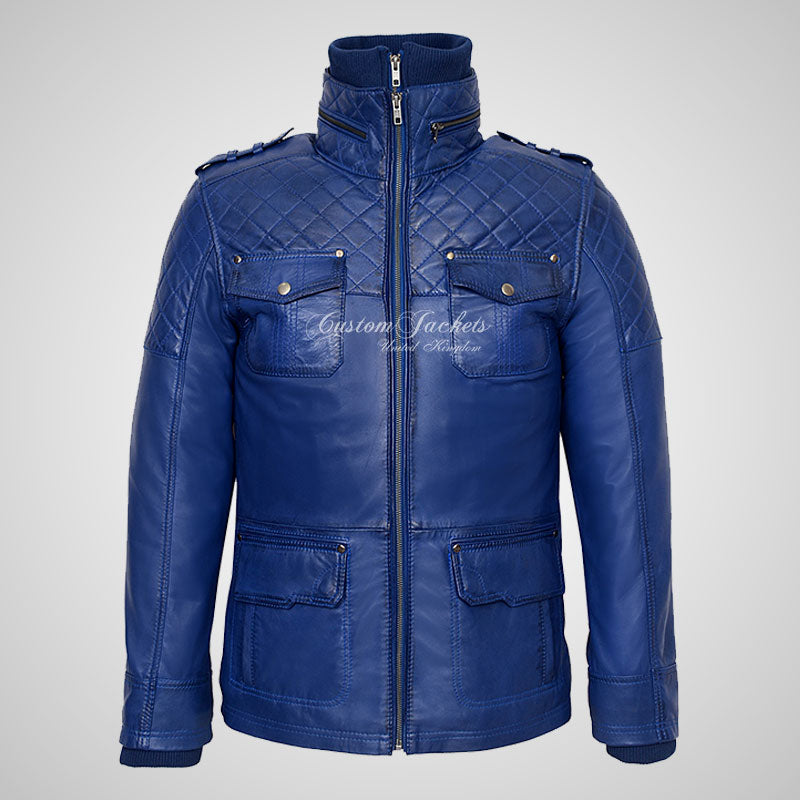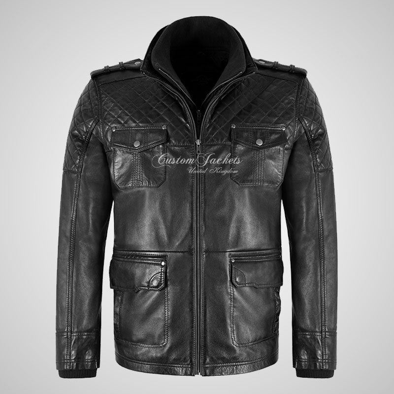Introducing our exceptional Men's Double Collar Leather Coat, inspired by the timeless Safari style and meticulously crafted from the finest soft lambskin napa leather. This leather coat is the epitome of refined elegance, perfect for both casual outings and parties. The warm fleece inner collar with inner zip closure provides ultimate comfort and warmth, making it ideal for colder days. The front zip closure ensures a secure fit, while the quilted pattern on the shoulder and sleeves adds a touch of sophistication and rugged charm. This versatile men's leather coat combines the classic appeal of a Safari style with modern elements, making it a standout choice for any occasion. Crafted with meticulous attention to detail, this coat is a true wardrobe staple for the fashion-forward man.