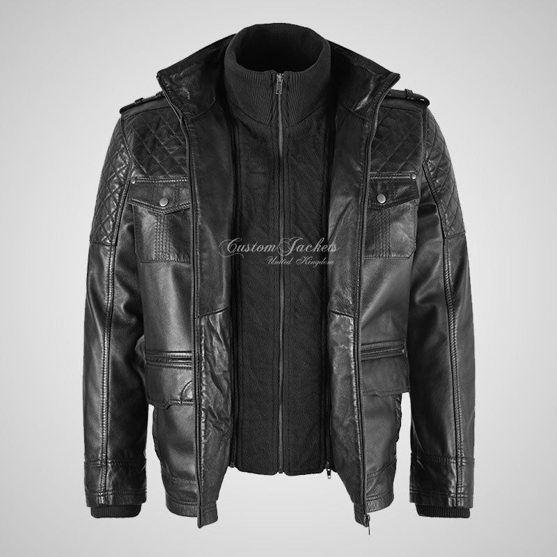 Introducing the CLIFTON Men's Casual Fashion Biker Style Double Collar Leather Jacket, a stylish and versatile outerwear piece designed for the modern man. This jacket is crafted from premium soft lamb napa leather, offering a luxurious and supple feel. It features a unique double collar design, with an inner collar made of cozy fleece and an outer collar in leather, adding a touch of sophistication. The quilted pattern on the shoulders enhances the jacket's rugged appeal. With its heavy-duty front zip closure, this jacket is perfect for casual outings during the winter season. Experience the perfect combination of style and durability with the CLIFTON Men's Casual Fashion Biker Style Double Collar Leather Jacket. Elevate your wardrobe and make a lasting impression with this exceptional piece.