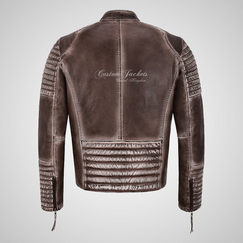 DISTRESSED BREW Mens Leather Biker Jacket Waxed Vintage Effect