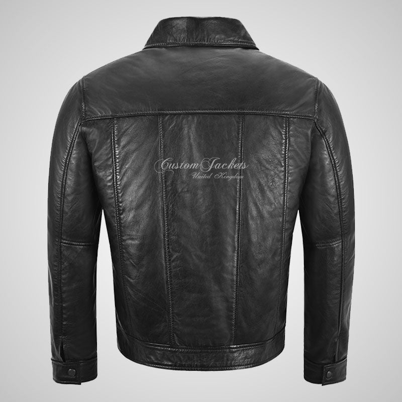 Introducing our Men's Leather Jacket with Shirt Collar, a smart and stylish addition to your wardrobe. This leather jacket features a fitted short body design, accentuating your physique and providing a modern look. Crafted from soft lamb napa leather, it offers a luxurious feel and exceptional comfort. The front zippered closure adds a touch of functionality and convenience, allowing for easy wear and a secure fit. Whether you're dressing up for a night out or looking to elevate your everyday style, this leather jacket is a versatile choice. Embrace the timeless appeal of a shirt collared jacket with a contemporary twist. Experience superior quality and fashion-forward design with our Men's Leather Jacket.