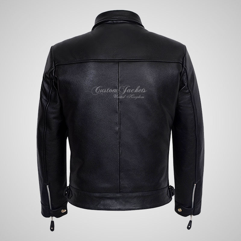 GERMAN LUFTWAFFE Black Men's Short Fitted Military Style Leather Jacket