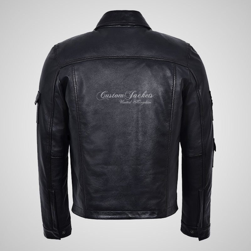 JADE Men's Classic Collared Leather Blouson Jacket Black