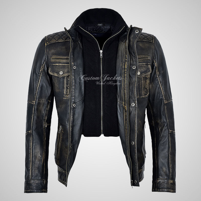 Introducing our Men's Leather Detachable Double Collar Biker Jacket, a stylish and versatile outerwear piece designed for both casual outings and motorcycle enthusiasts. Crafted from soft lamb nappa leather, this jacket offers a luxurious feel and excellent durability. The highlight of this jacket is its unique double collar design, featuring an inner fleece collar that is zip detachable. This allows you to switch up your look and adapt to different weather conditions. The black yellow vintage waxed color adds a touch of edginess and character to the jacket. Whether you're hitting the road on your motorcycle or simply heading out for a casual outing, our Men's Leather Detachable Double Collar Biker Jacket is the perfect choice for both style and functionality.
